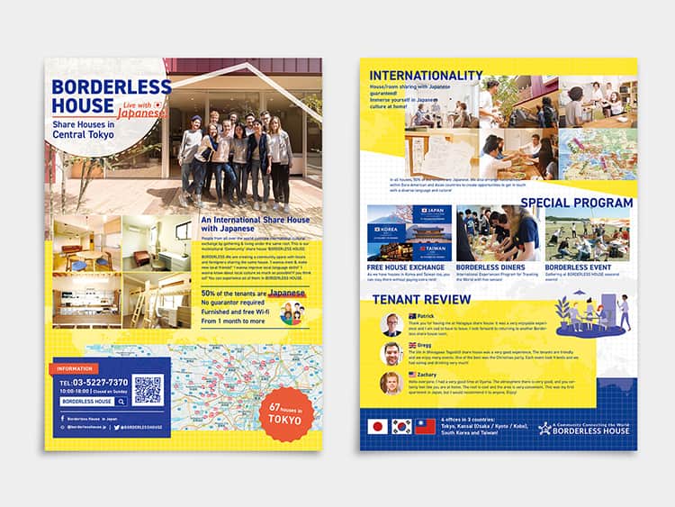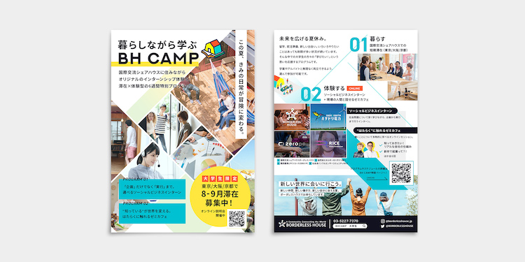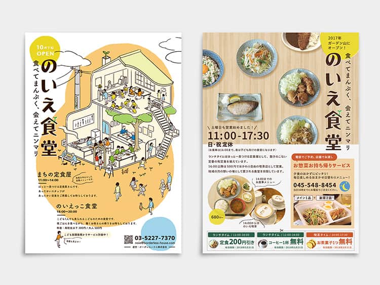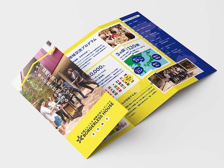 コーポレートパンフレットやポスターなど。タイトルロゴや企業ロゴ作成と合わせて行うこともあります。